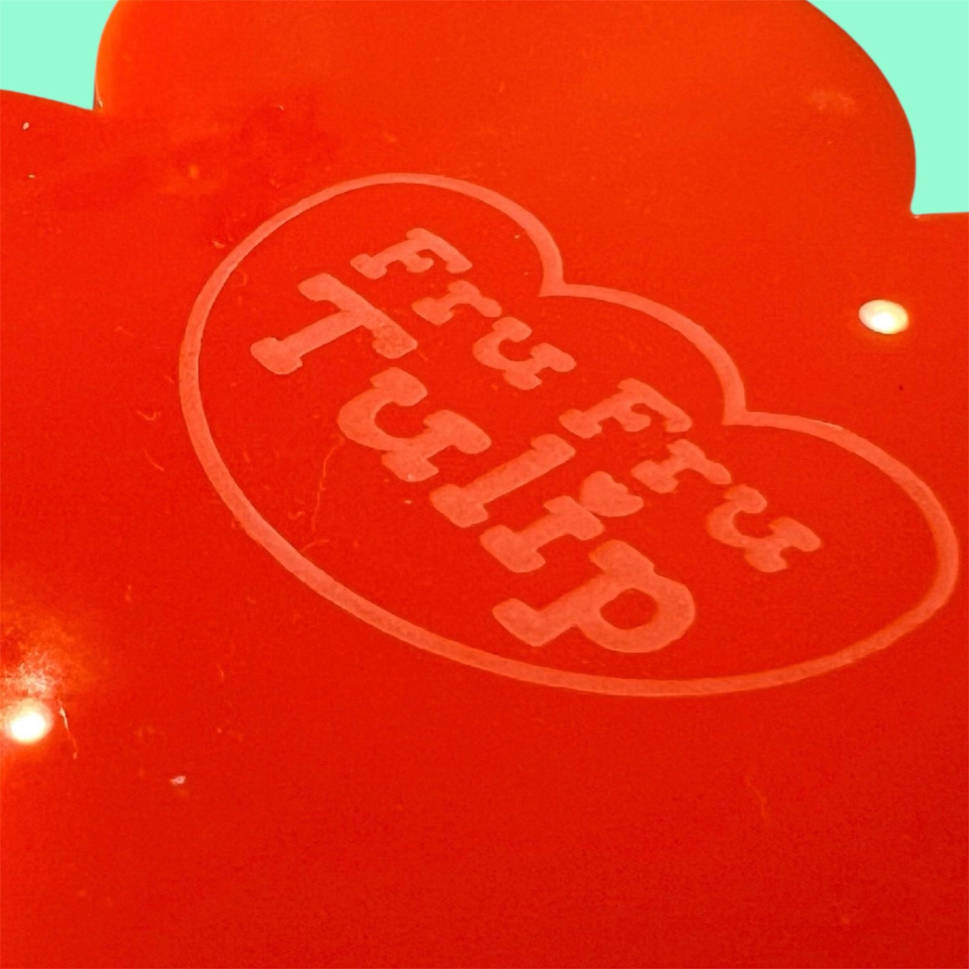 They have non slip feet and the Fru Fru Tulip logo engraved on the back.