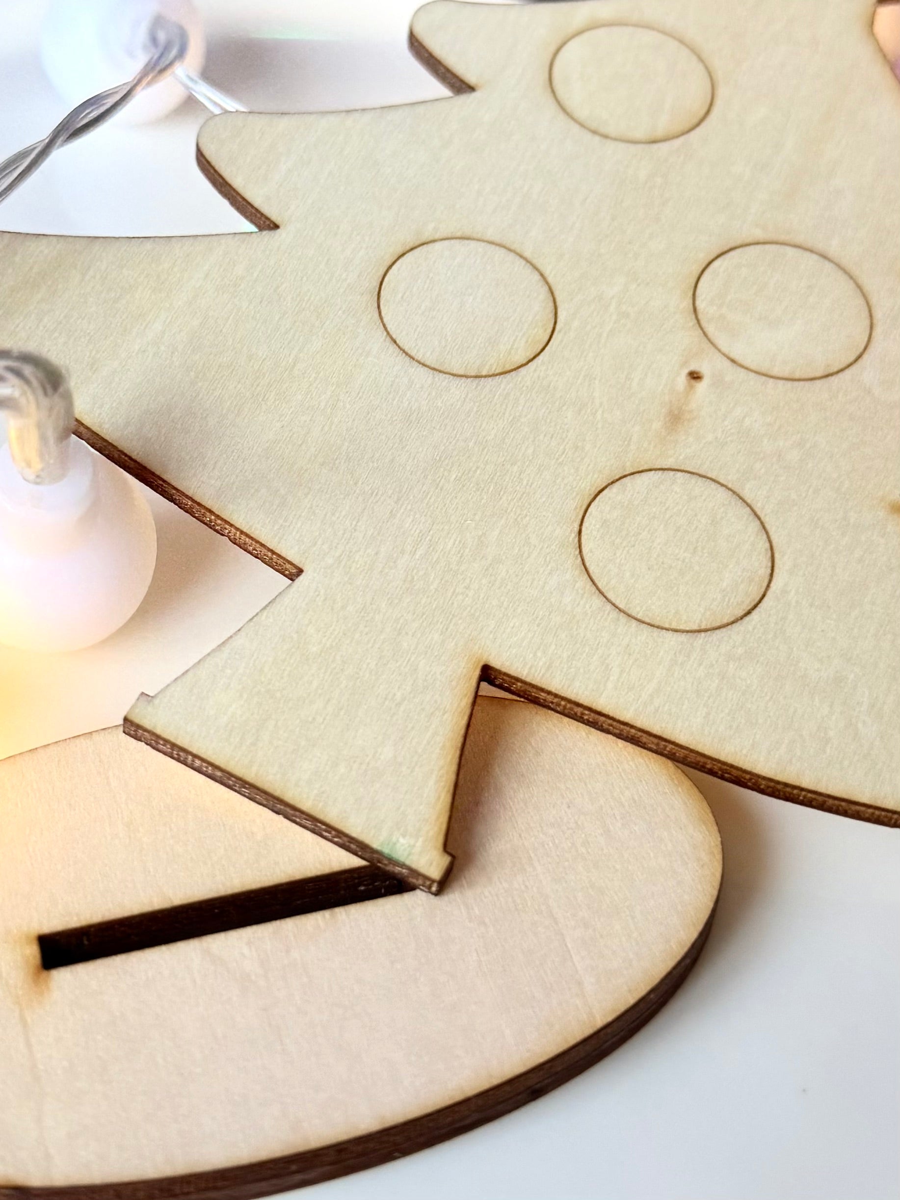 Colour in and decorate your own Christmas tree, Laser cut from 3mm Basswood, its hard wearing and will last many Christmas'.