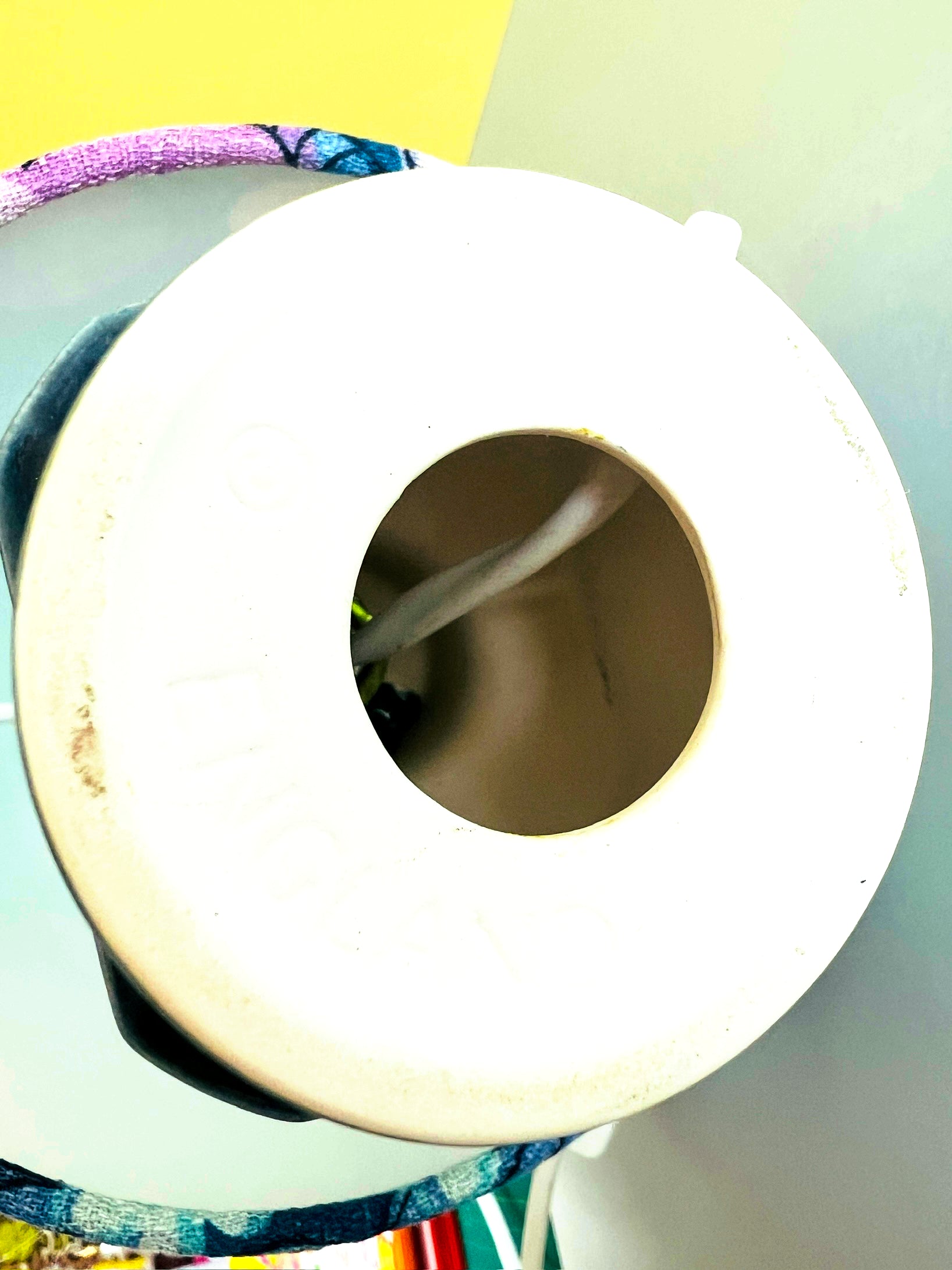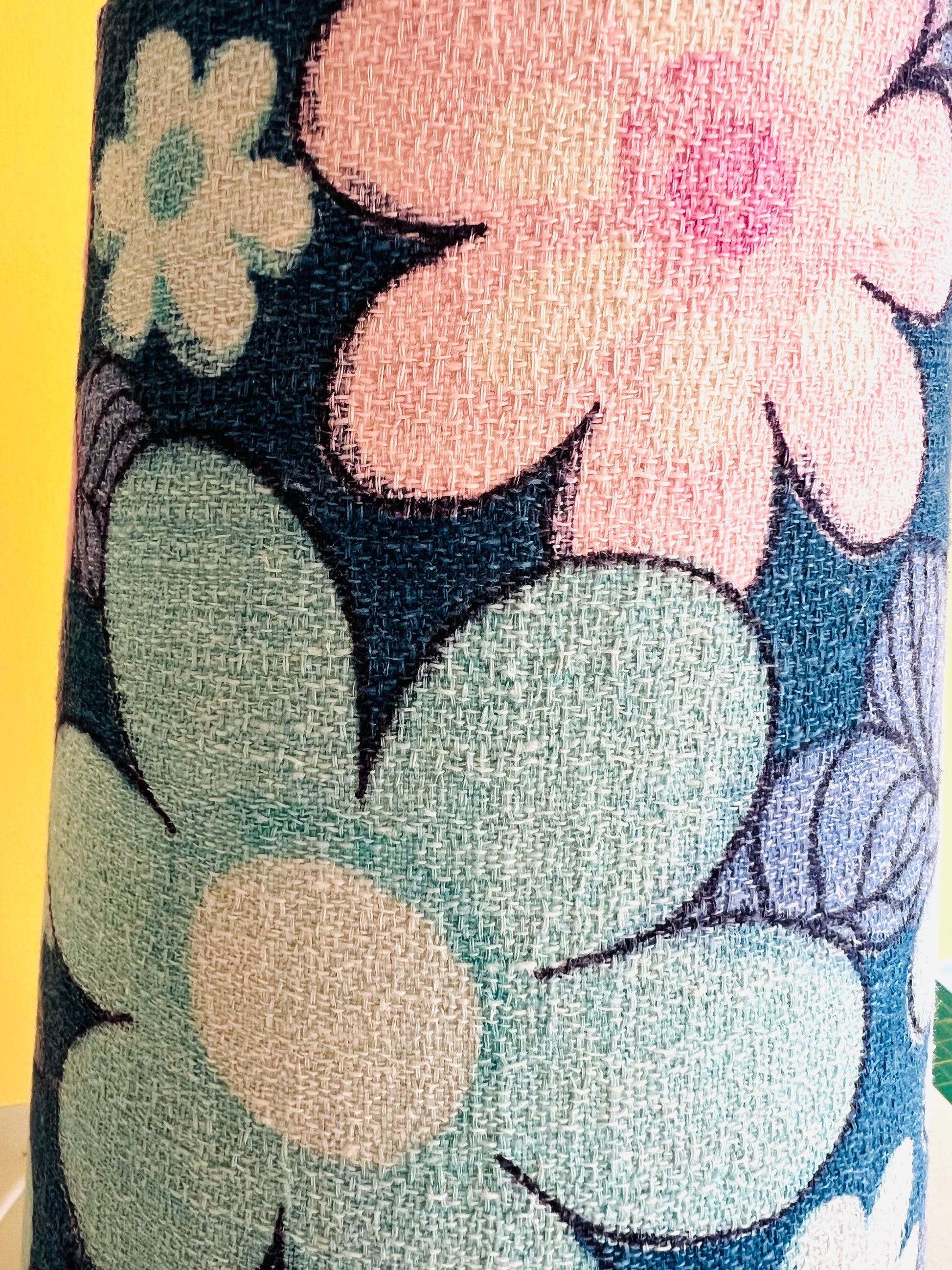 The shade has a retro flower design of colours blues and purples, a perfect match for this fabulous little base.