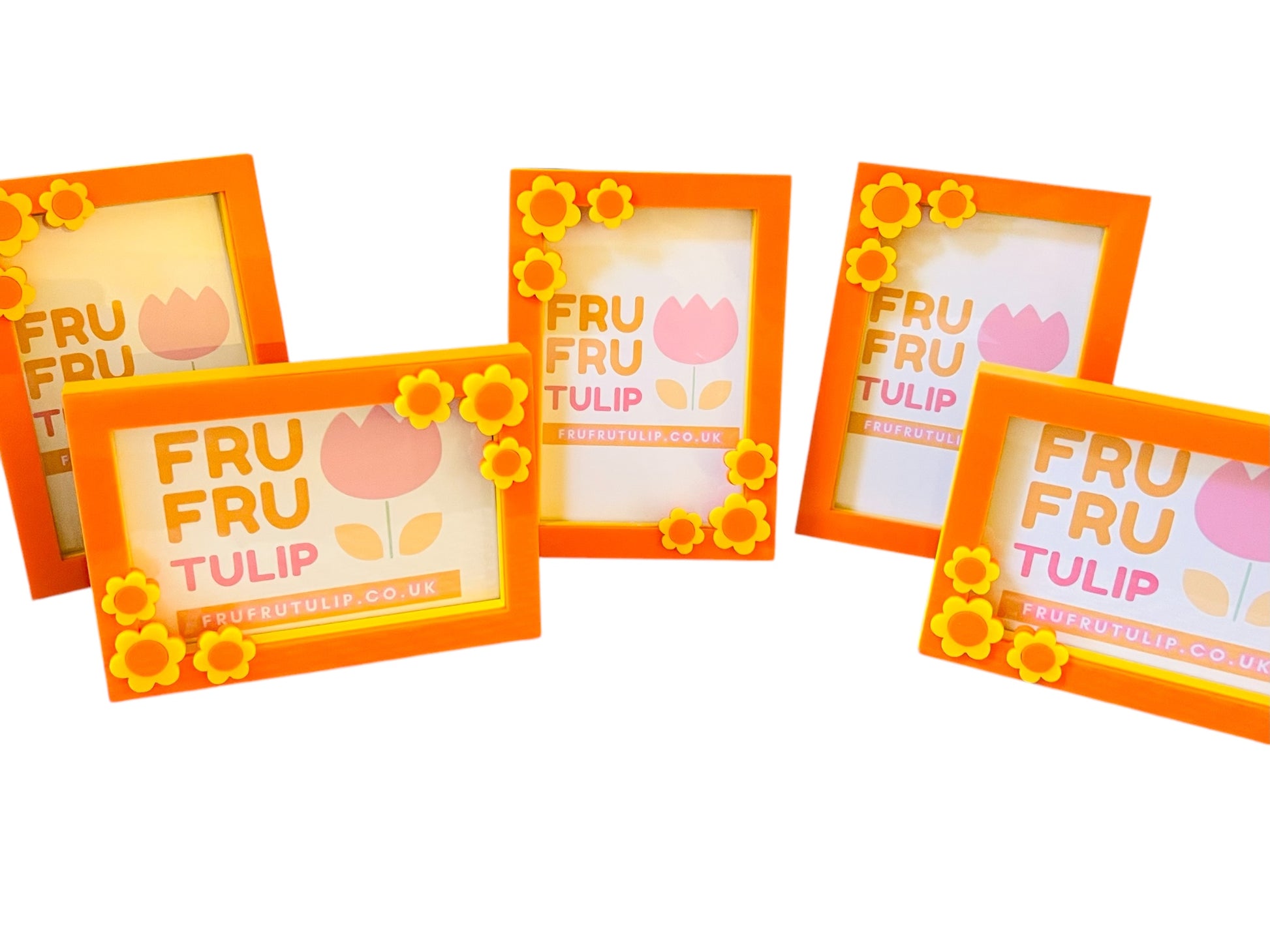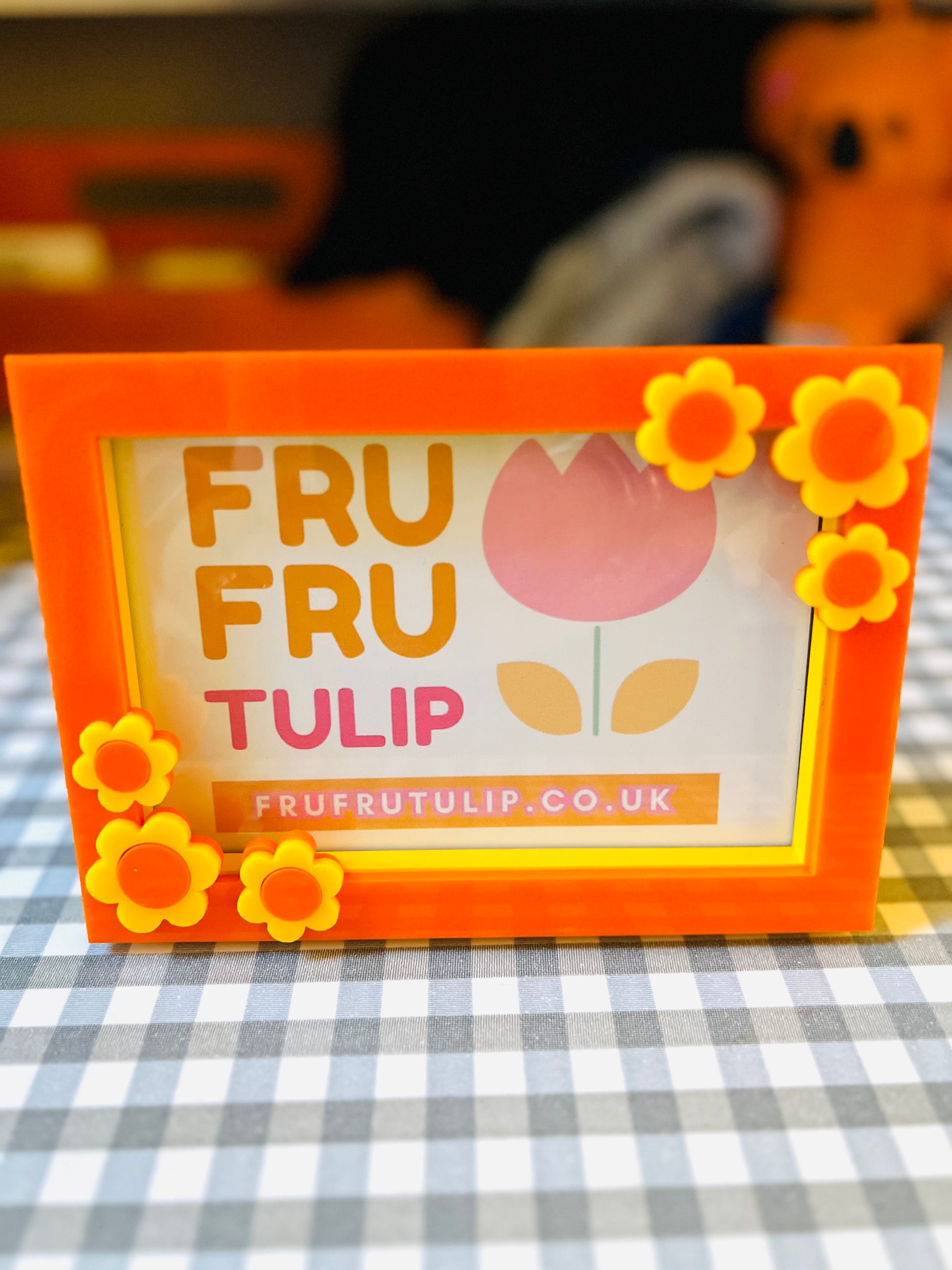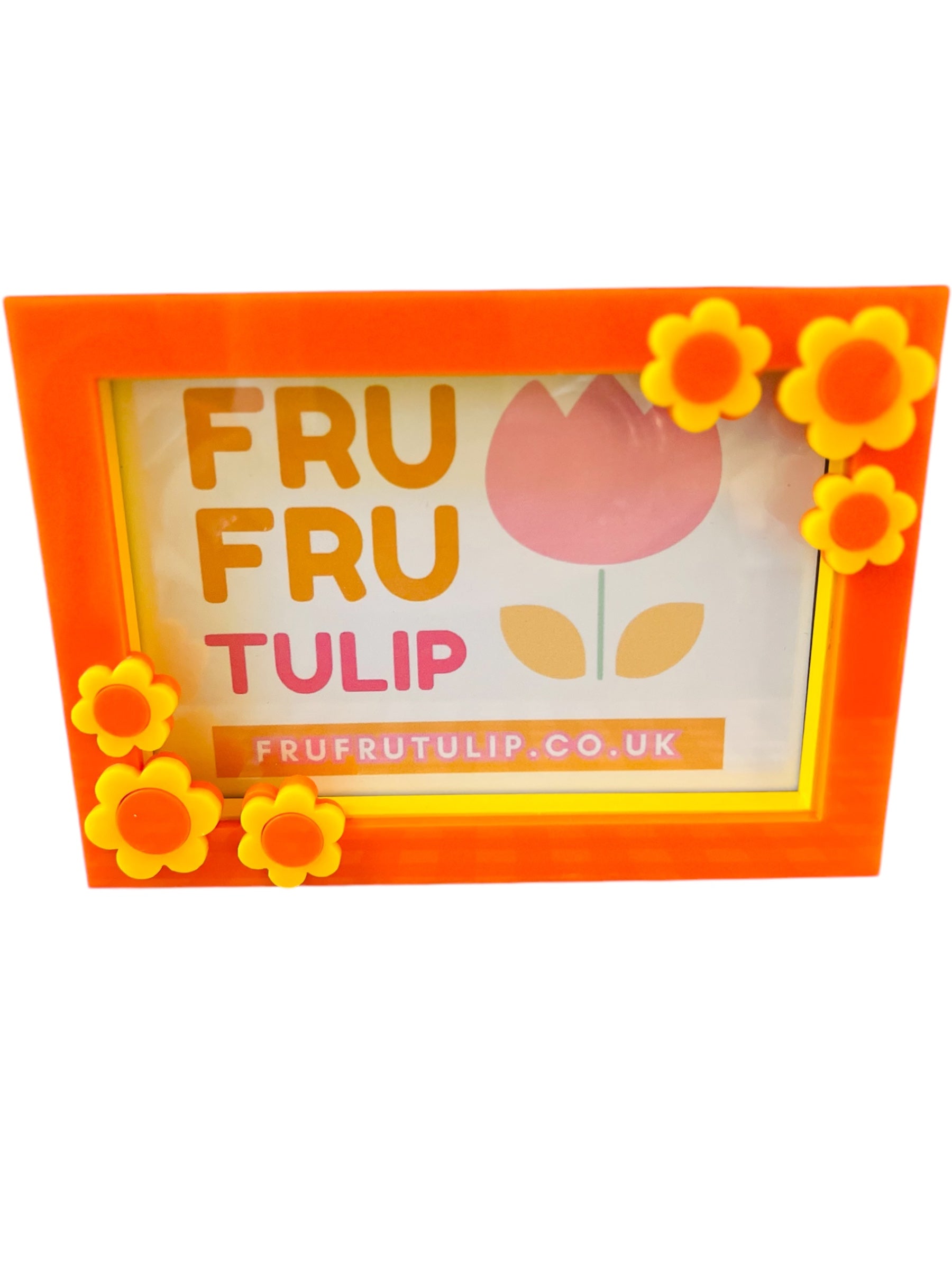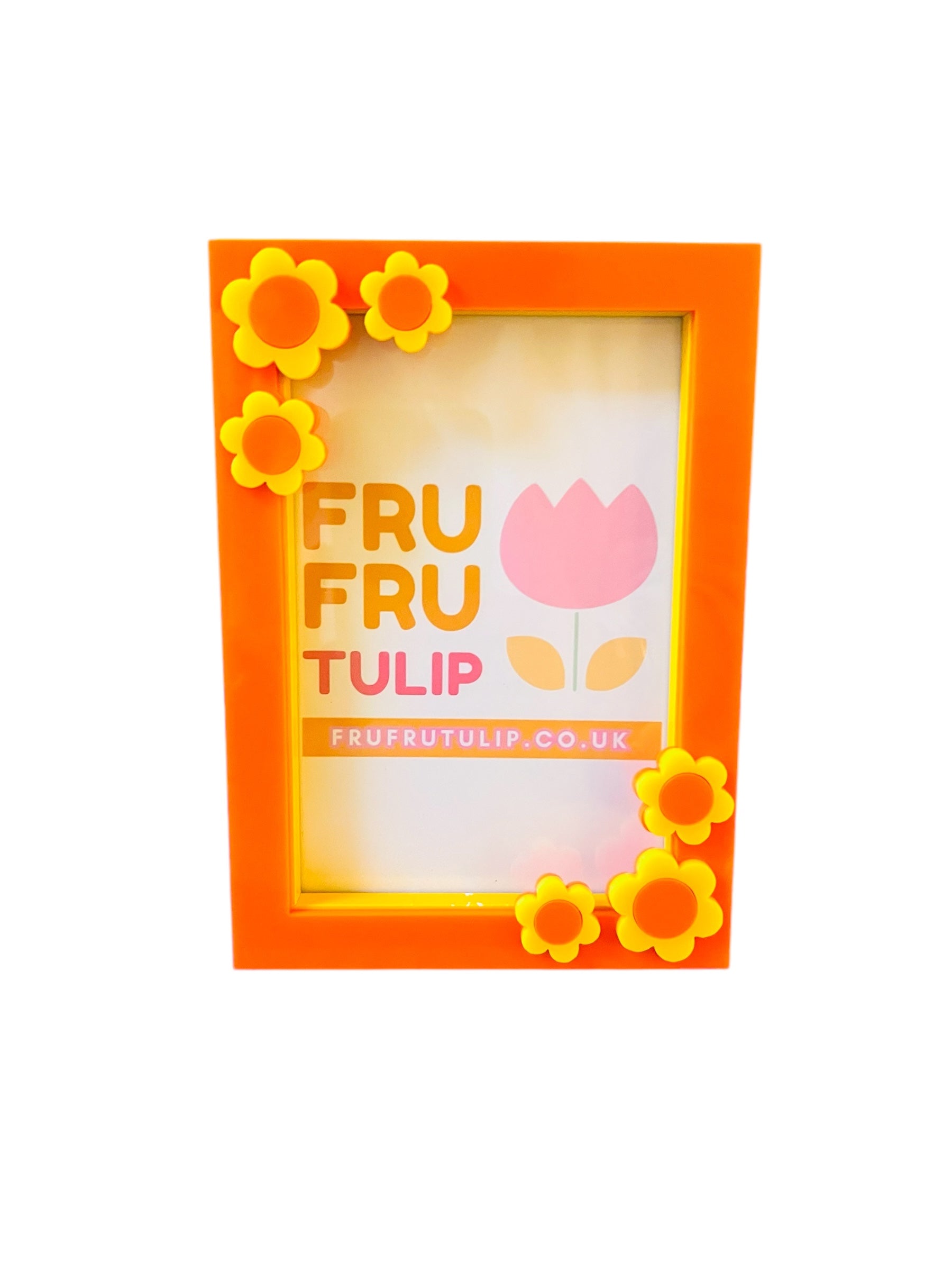 An orange and yellow 6x4 Picture Frame, decorated with flowers.