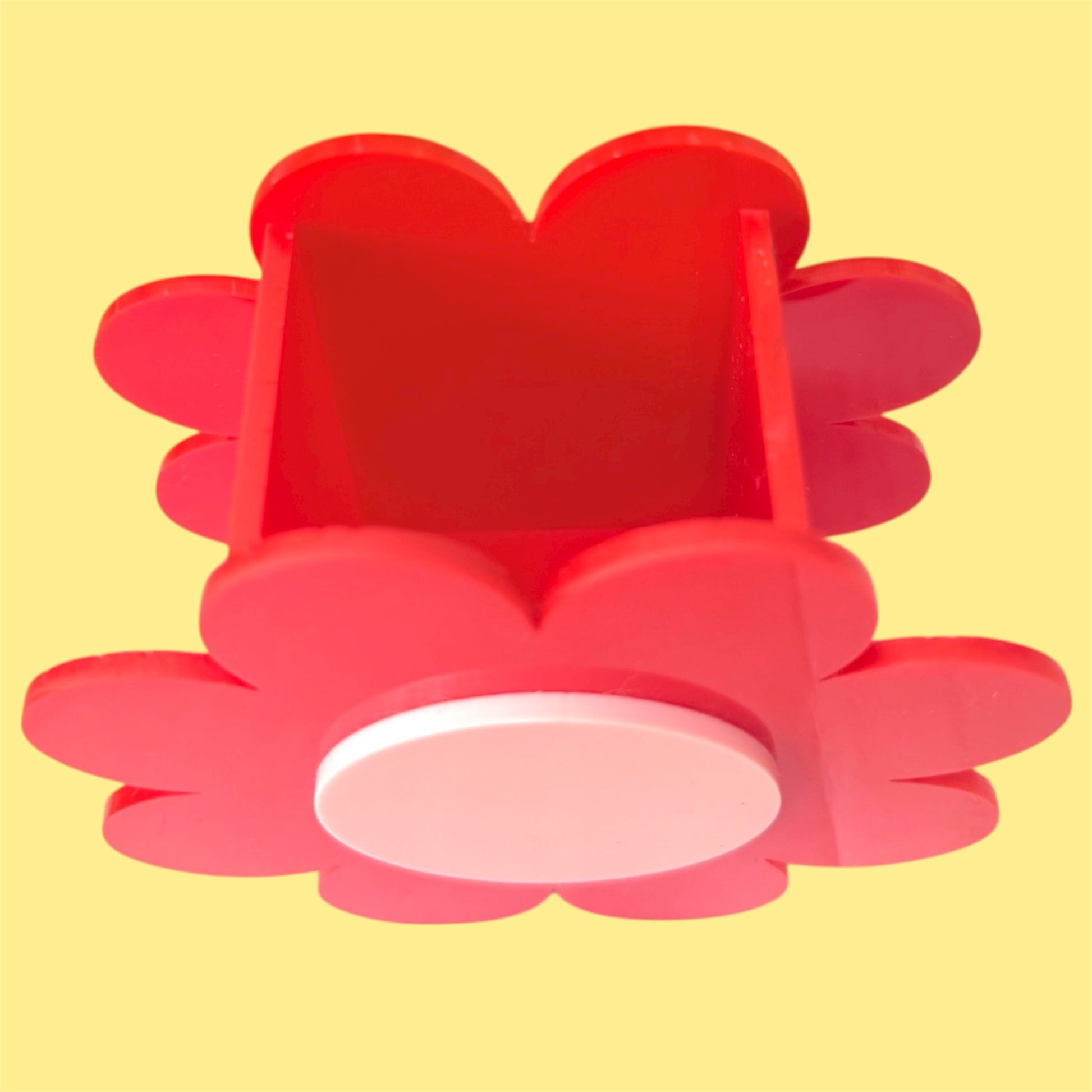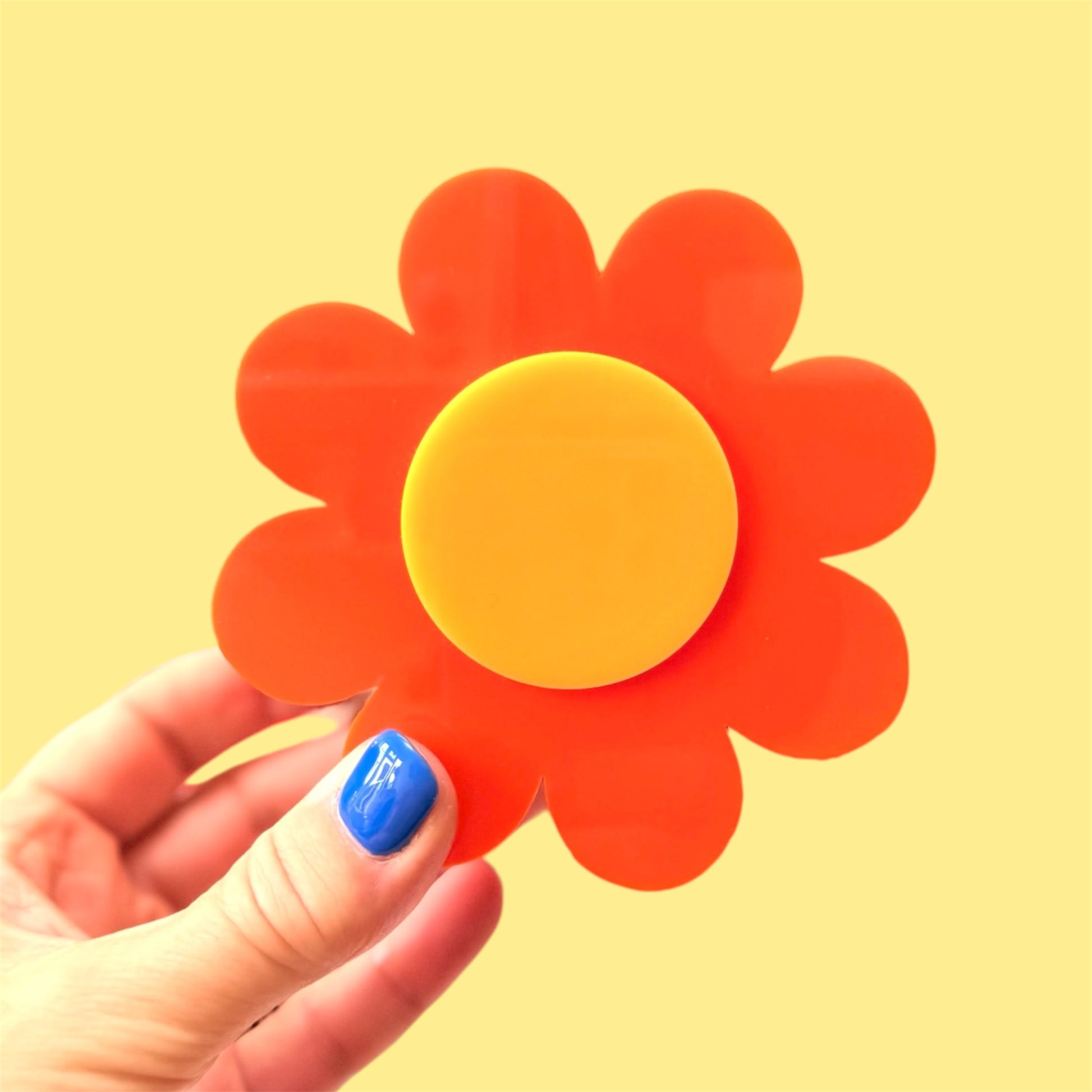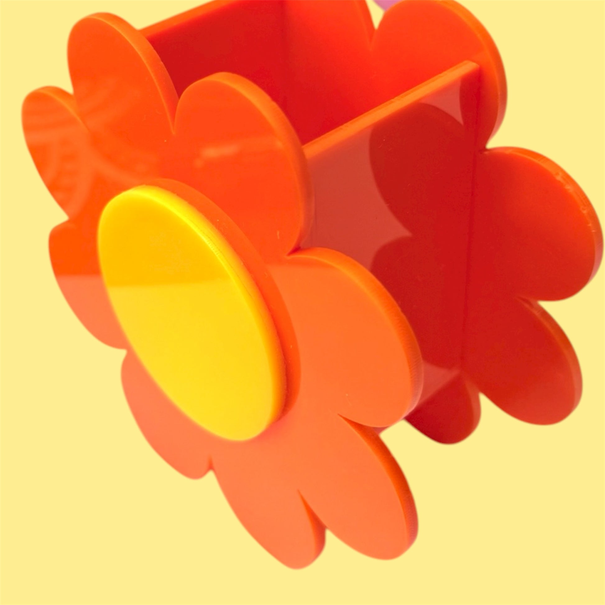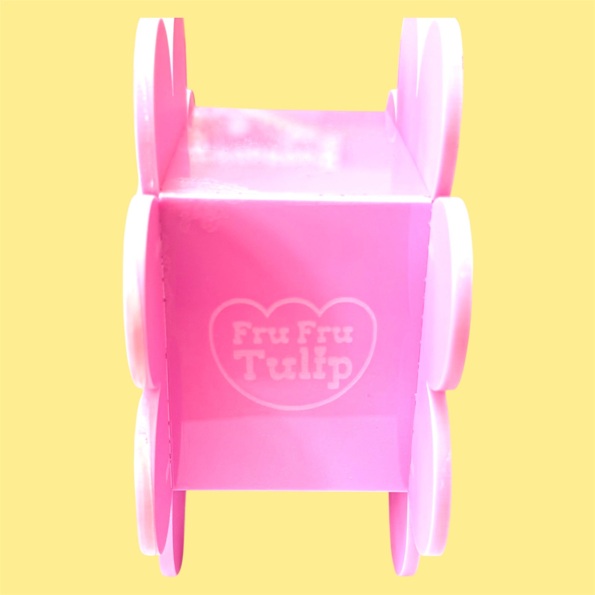 Laser cut from 3mm cast acrylic from vibrant colours of orange, yellow, red, pink and lilac with the Fru Fru Tulip logo engraved on the bottom.