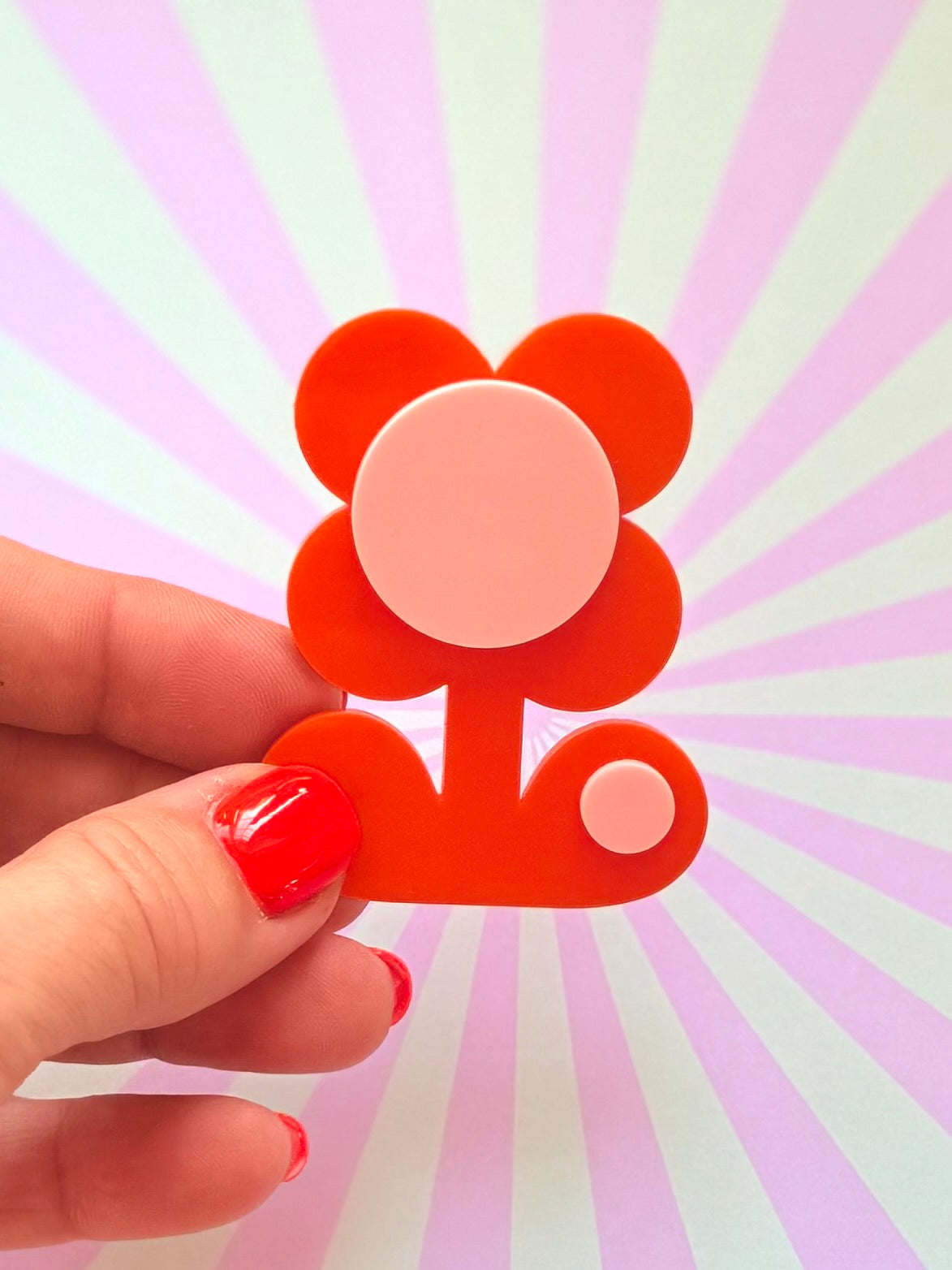 With its groovy 60s/70s vibe and eye-catching colour combo, this statement brooch is perfect for adding personality to jackets, cardigans, tote bags, scarves, and dresses. Whether you're a lover of vintage style or simply adore bright, happy accessories, this flower is made to bloom boldly.