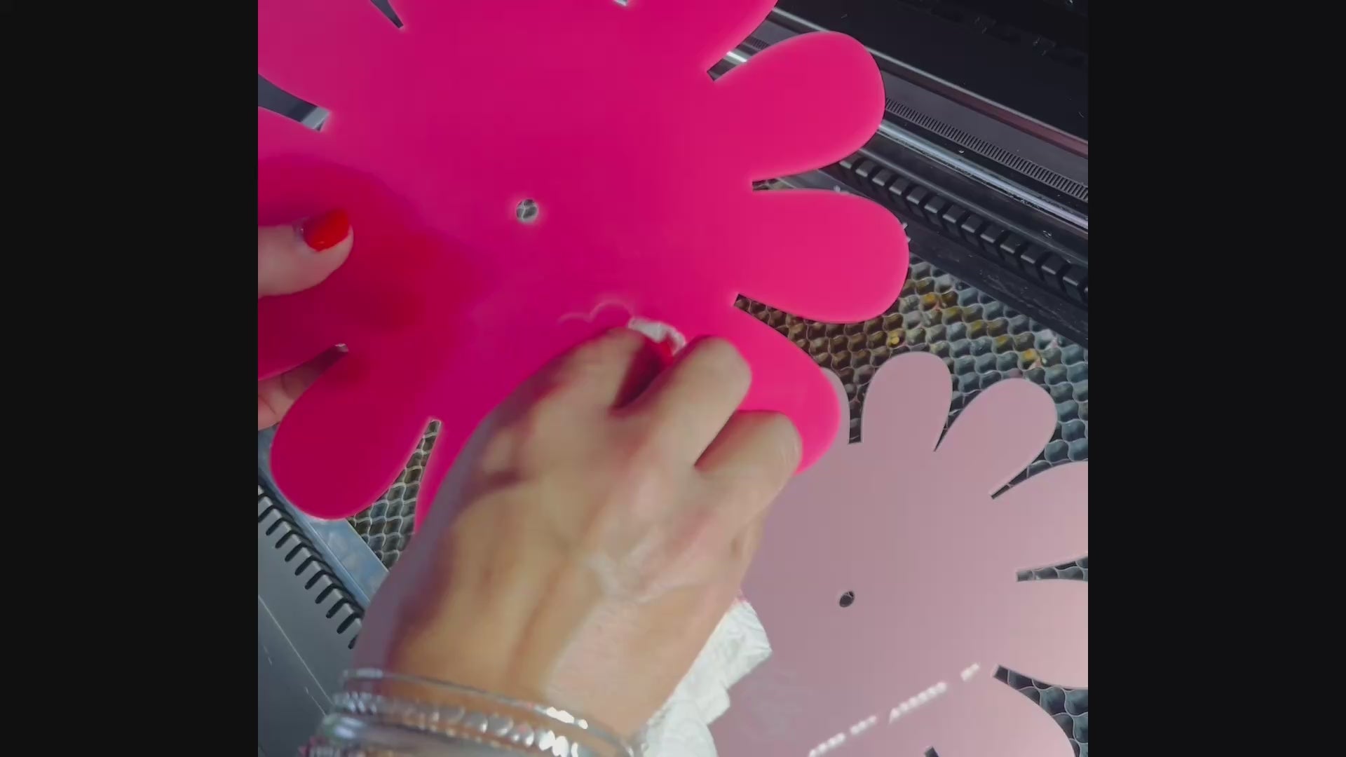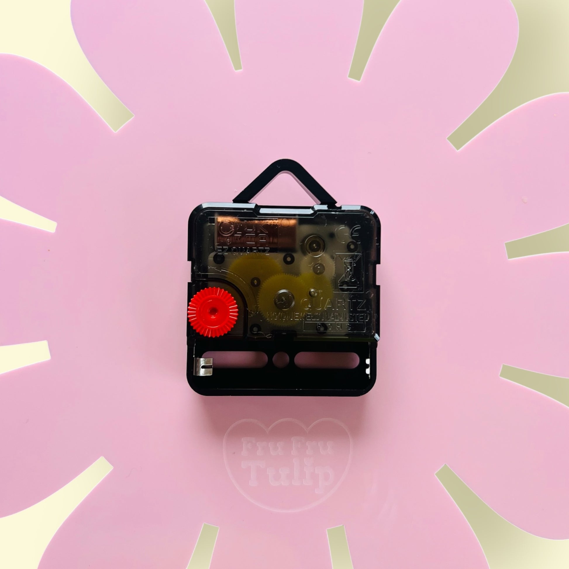 Handmade by me from scratch, using vibrant red and pink 3mm cast acrylic, it has white hands, the Fru Fru Tulip logo engraved on the back AND it’s a silent ticker making it perfect for a bedroom/nursery.