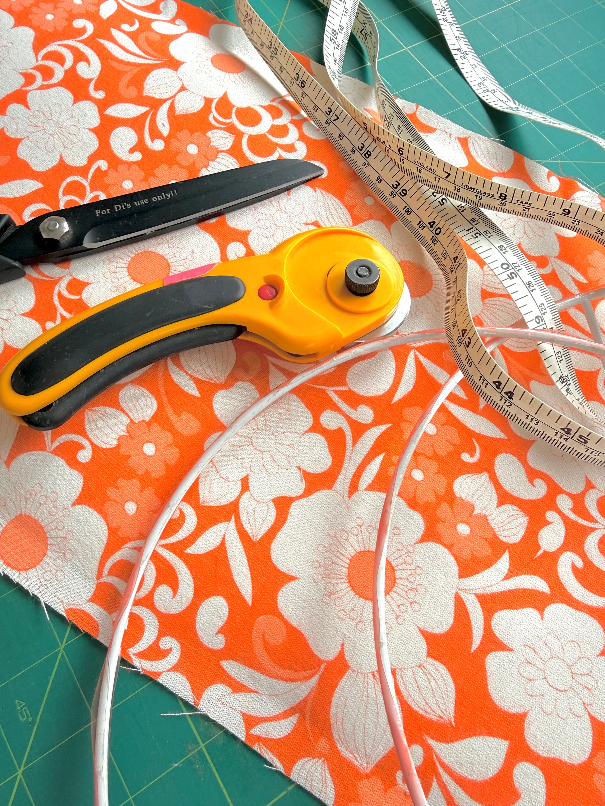 A fabulously retro lampshade. The fabric has a lovely soft texture the design is of large white flowers on an orange background.